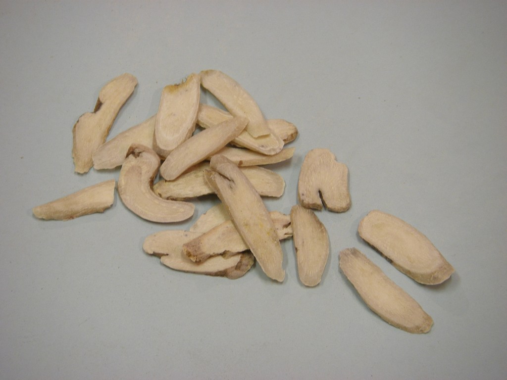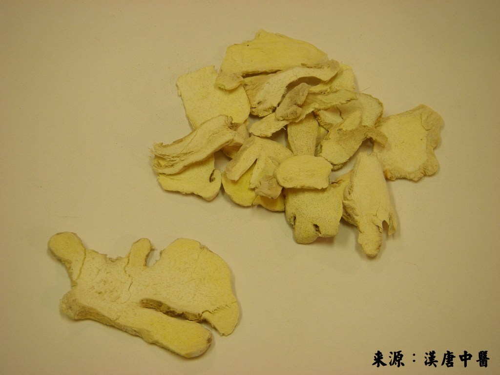 味辛性溫,入足陽明胃、足太陰脾、足厥陰肝、手太陰肺經。能燥濕溫中健胃,行郁降濁陰之氣,補益火土,消納飲食,暖脾胃而溫手足,調陰陽而止嘔吐,降濁逆而平咳嗽,提脫陷而止滑瀉。《本經》:“氣味辛溫無毒,主治胸滿咳逆上氣,溫中,止血,止虛汗,逐風濕二痹證,腸澼下利日久,生者尤良”。能散風寒,和 胃,止嘔,其在方劑配伍中有(一)真武湯加減:下利者去芍藥加乾薑。《傷寒論》乾薑附子湯:治太陽傷寒,下後復汗,晝日煩燥不得眠,夜而安靜,不嘔不喝, 脈沉無表證,身無大熱者,以火土俱敗,寒水下旺,微陽拔根,不得安寧,故用乾薑溫中以回脾胃之陽,附子暖下以復肝腎之陽。(二)柴胡桂薑湯:柴胡半斤,黃 芩三兩,甘草二兩,桂枝三兩,栝樓根四兩,乾薑二兩,牡蠣二兩(系漢代分兩)。治少陽傷寒,汗後復下,胸脅滿結,小便不利,渴而不嘔,但頭汗出,心煩,往來寒熱(以汗下傷其中氣,土敗木郁,不能行水,故小便不利),膽胃上逆之證。如加常山四錢,草果三錢,榔片三錢,人弱者加附子二兩(今制十六兩為一斤之舊 衡),治久瘧特效。(三)理中湯輩有七方。(四)四逆湯輩有九方。(五)瀉心湯七方。此僅就長沙方而言,至於其他文獻有乾薑者,難以枚舉。以上廿三方作用 之大,皆得乾薑溫中燥濕,健胃,助消化,止咳化痰,抑制水濕泛濫,大溫肝臟郁滯,溫而不燥,化濕生津,逐痰止咳,中宮虛寒,嘔吐泄瀉,水氣腫脹等等。得此 加入方劑中,療效甚高。生者溫胃止嘔,溫散風寒尤良,但凡胃腸燥熱,一切邪火陰虛等證禁忌。至於一切中焦虛寒之證,若畏乾薑燥熱辛辣,不敢使用,而以補中寒中之劑投之,不但無效,抑且輕者變重,重者易轉危亡,故乾薑為溫脾濕胃寒之妙品也。